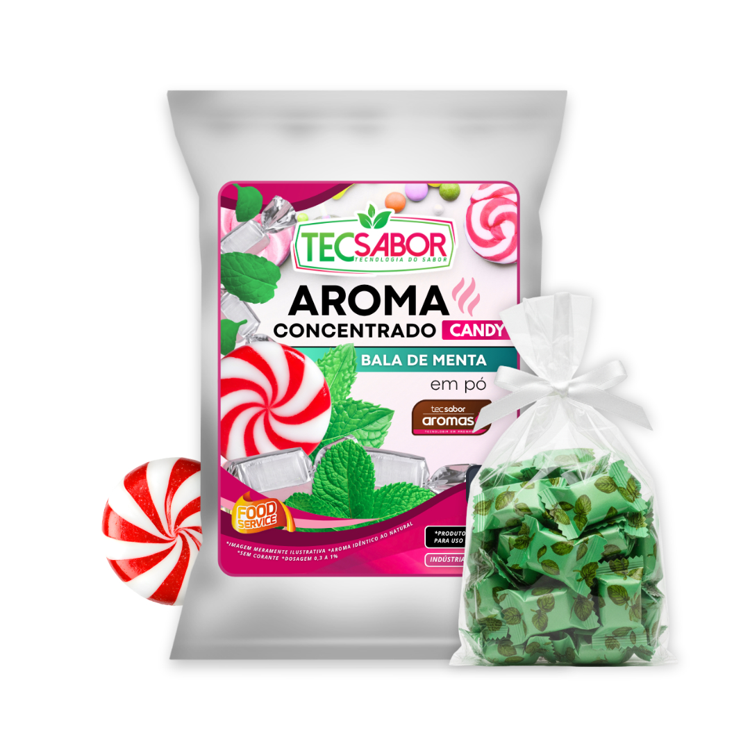 Aroma Idêntico ao Natural de Bala de Menta Candy (AIN): apresenta o sabor intenso, refrescante e levemente adocicado da clássica bala de menta, com notas frescas e marcantes que proporcionam sensação prolongada de frescor ao paladar.