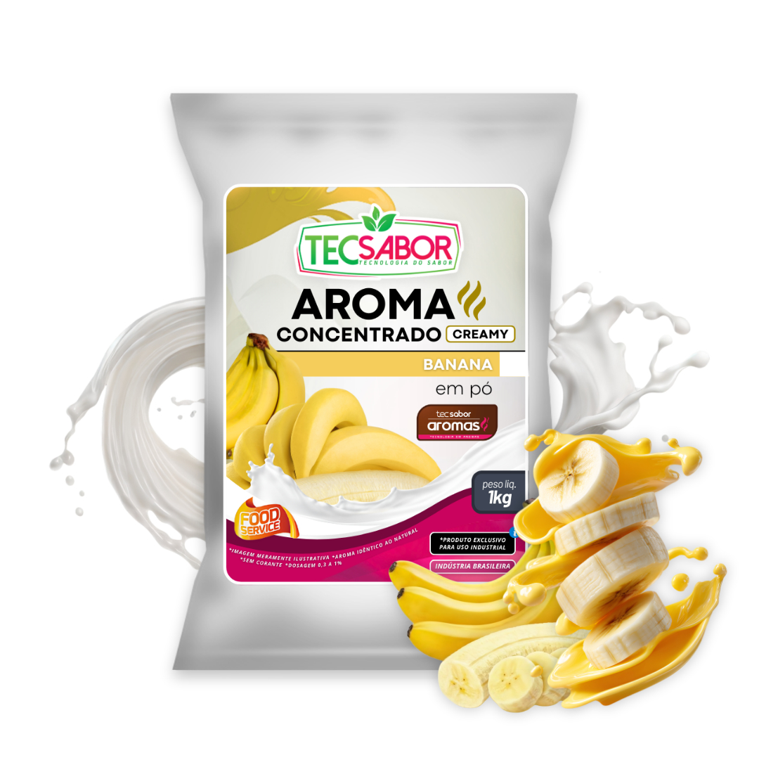 Aroma Idêntico ao Natural de Banana (AIN): oferece o perfil clássico, doce e cremoso da banana madura em uma versão concentrada, estável e versátil, ideal para aplicações em industrias de alimentos, sorvetes, bebidas, confeitaria, pipocas gourmet e preparações industriais em geral garantindo aroma intenso, fácil dosagem e excelente rendimento sem perder o caráter frutal e envolvente característico da fruta.