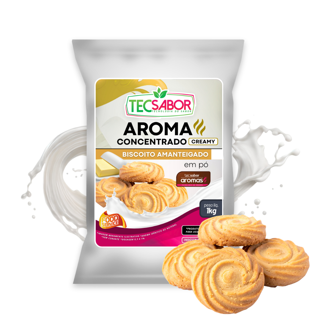 Aroma Idêntico ao Natural de Biscoito Amanteigado (AIN): formulado com perfil creamy, reproduzindo notas ricas de manteiga, massa assada e dulçor equilibrado, com fundo levemente tostado que amplia a sensação de cremosidade e conforto sensorial. Apresenta ótima dispersão em matrizes secas e úmidas, boa estabilidade térmica e desempenho consistente em processos industriais, sendo indicado para sorvetes, gelados comestíveis, sobremesas, recheios, coberturas, biscoitos, bolos e bases lácteas que exigem padronização aromática e perfil indulgente.