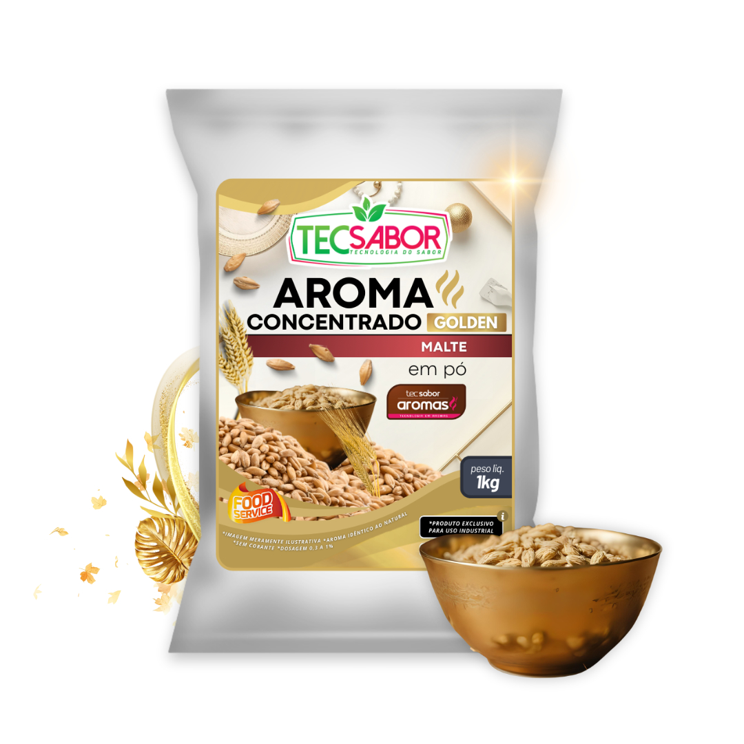 Aroma Idêntico ao Natural de Malte (AIN) da linha Golden, com perfil encorpado, notas tostadas e levemente adocicadas, desenvolvido para alta estabilidade térmica, excelente desempenho industrial e fidelidade sensorial em diferentes matrizes alimentícias.