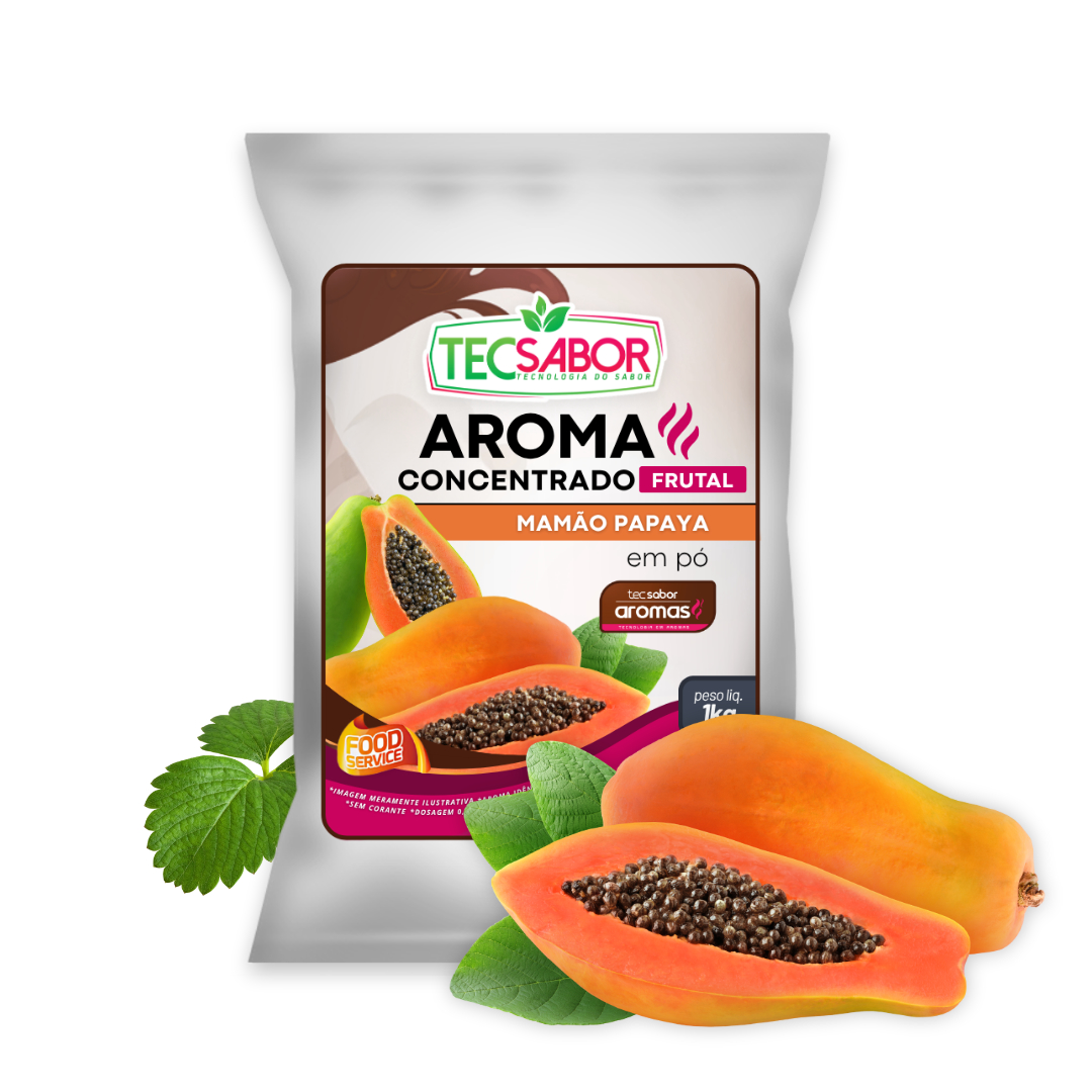 Aroma Idêntico ao Natural de Mamão Papaya Frutal (AIN): entrega o perfil suave, doce e tropical do mamão papaya maduro, com notas frutadas delicadas e levemente cremosas que remetem à fruta fresca e suculenta. Sua fórmula concentrada garante alta estabilidade, excelente rendimento e fácil aplicação em bebidas, sorvetes, gelados comestíveis, confeitaria e preparações industriais, proporcionando um aroma equilibrado, agradável e ideal para receitas com apelo leve e tropical.