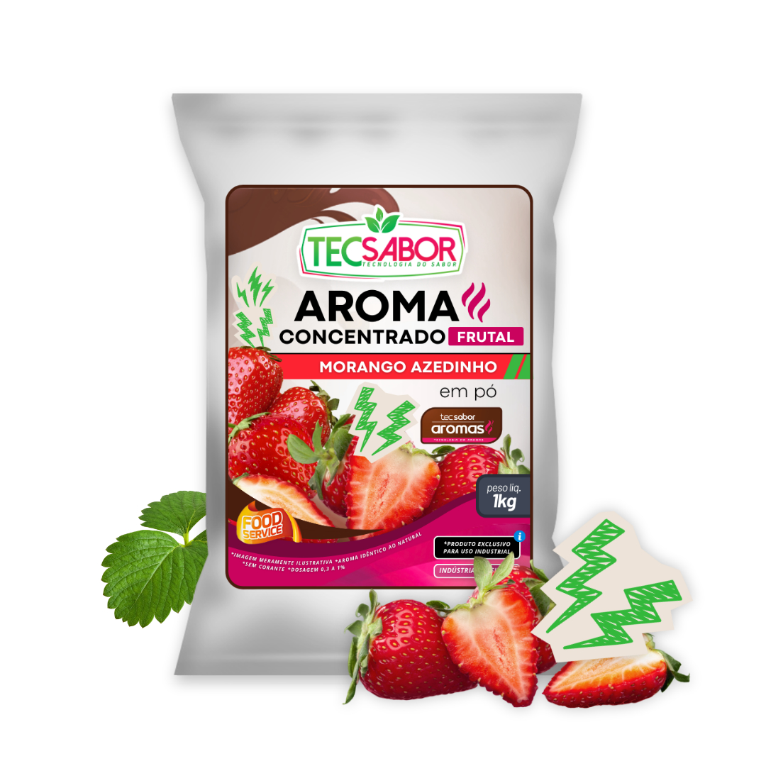 Aroma Idêntico ao Natural de Morango Azedinho (AIN): combina o sabor marcante do morango com acidez equilibrada e refrescante, entregando um perfil frutado vibrante, moderno e envolvente. Em pó, oferece fácil dosagem, ótima dispersão e alta estabilidade, sendo ideal para bebidas em pó, gelados comestíveis, balas, confeitaria, sobremesas e aplicações industriais.