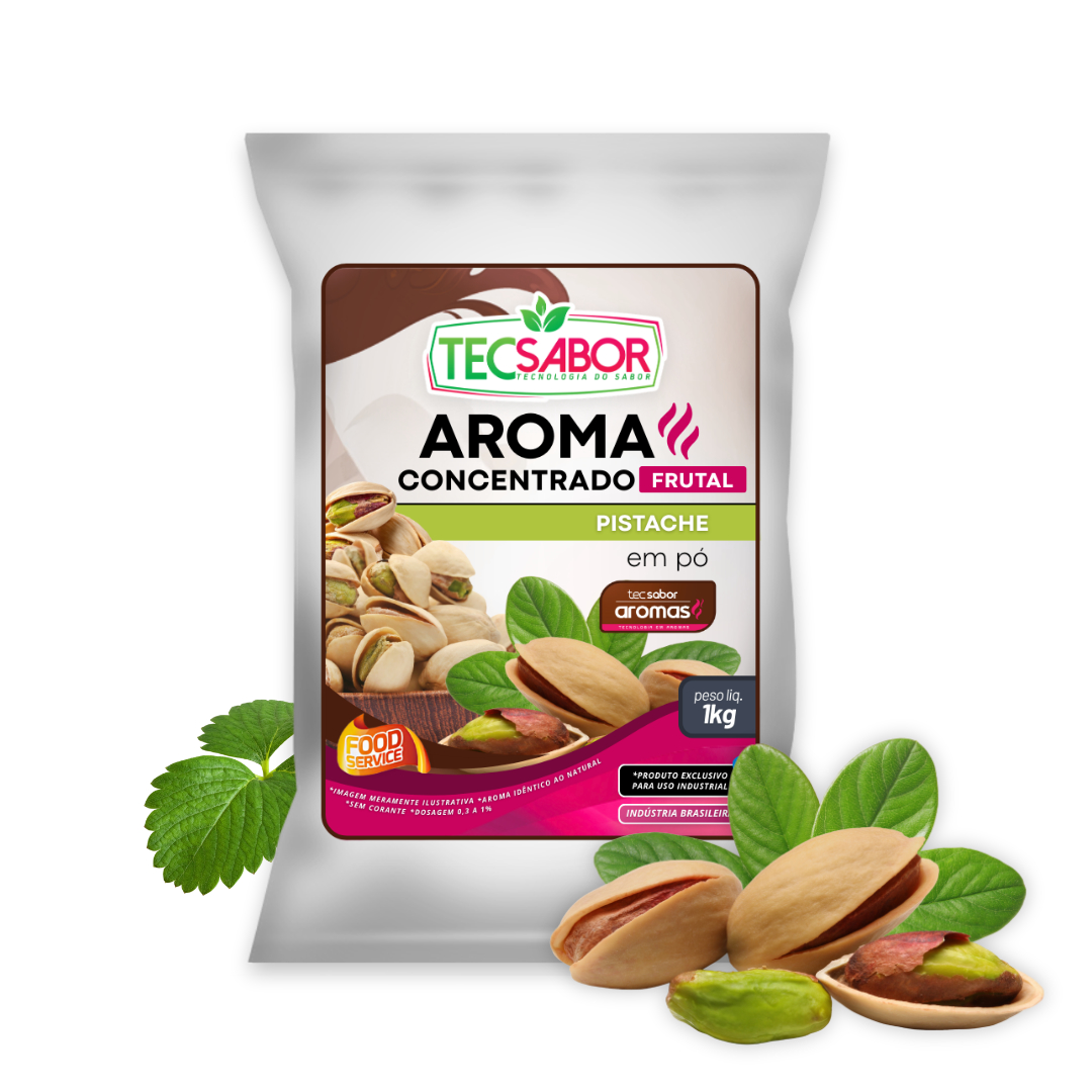 Aroma Idêntico ao Natural de Pistache (AIN): apresenta perfil sofisticado, levemente adocicado e cremoso, com notas características do pistache que entregam sabor elegante, marcante e equilibrado.