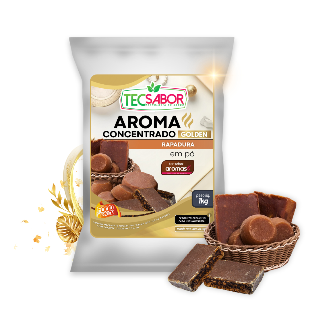 Aroma Idêntico ao Natural de Golden Rapadura (AIN) apresenta um perfil aromático intenso, quente e envolvente, com notas profundas de rapadura e açúcar de cana caramelizado, combinadas a nuances douradas levemente tostadas, toque adocicado marcante e um fundo suavemente alcoólico, que remete a licores artesanais e receitas tradicionais brasileiras, criando uma experiência sensorial rica, rústica e sofisticada ao mesmo tempo, ideal para aplicações que buscam identidade, autenticidade e um aroma doce com caráter premium.