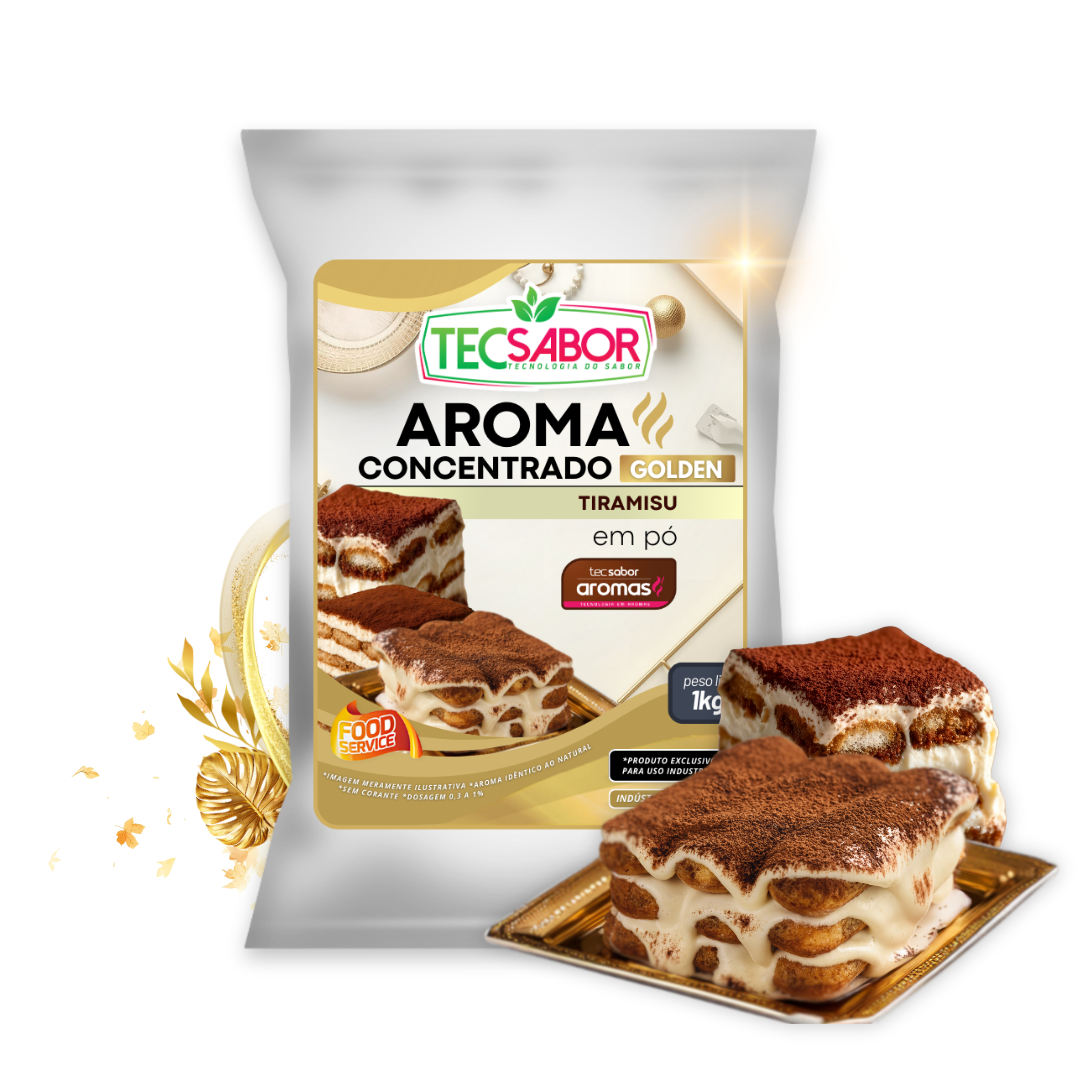 Aroma Idêntico ao Natural de Golden Tiramisù (AIN) apresenta um perfil aromático sofisticado e indulgente, combinando notas marcantes de café com nuances cremosas de mascarpone, toques de cacau e dulçor equilibrado, finalizado por um fundo dourado levemente alcoólico que remete a sobremesas clássicas italianas, ideal para aplicações que buscam elegância e complexidade sensorial.