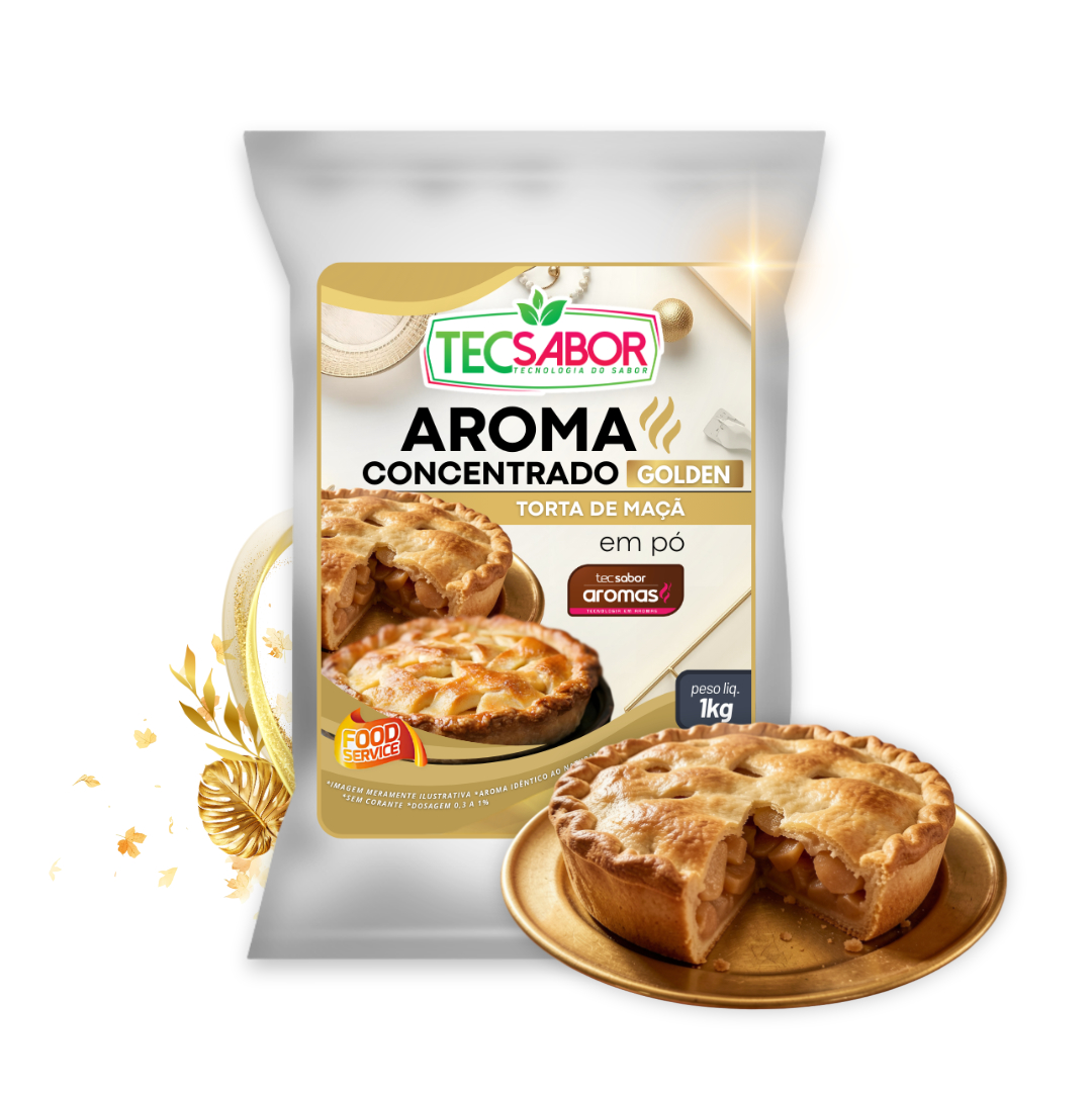 Aroma Idêntico ao Natural de Golden Torta de Maçã (AIN) apresenta um perfil aromático doce, quente e sofisticado, com notas de maçã cozida e caramelizada, nuances amanteigadas de massa assada, toques suaves de canela e um fundo dourado levemente alcoólico que remete a sobremesas clássicas e reconfortantes, ideal para aplicações que buscam elegância e aconchego.