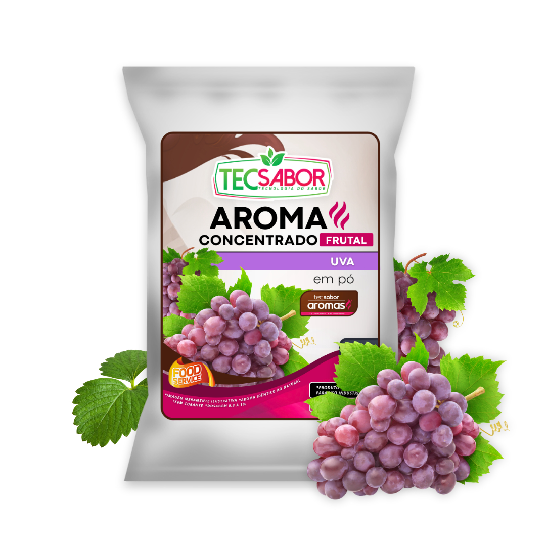 Aroma Idêntico ao Natural Uva em Pó (AIN) - Oferece o sabor clássico e marcante da uva em uma versão concentrada, prática e versátil. Garante intensidade mesmo em pequenas quantidades, ideal para industria de alimentos, sorvetes, bebidas, balas, sucos, laticinios, panificação, confeitaria, doces, chocolates, pipocas gourmet, snacks, condimentos, temperos.